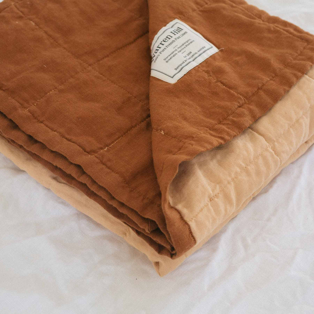 Colour: This two tone cot blanket is Rust on one side, Oat on the other, which perfectly match out Rust colour play mat and our Oat colour play mat