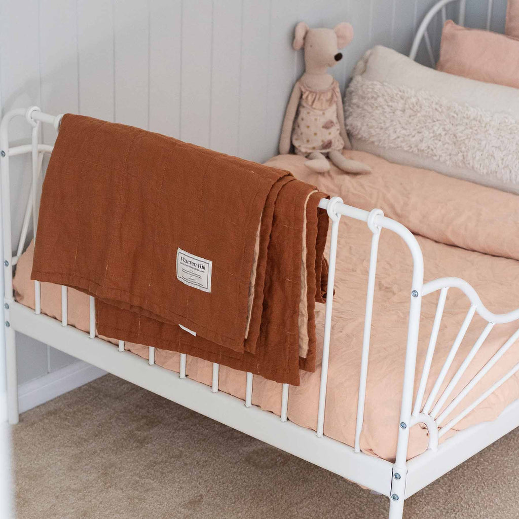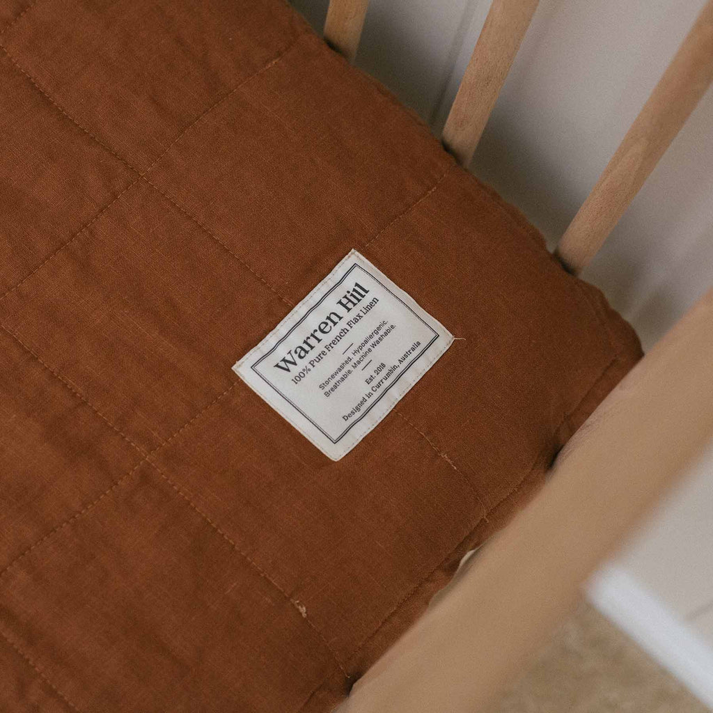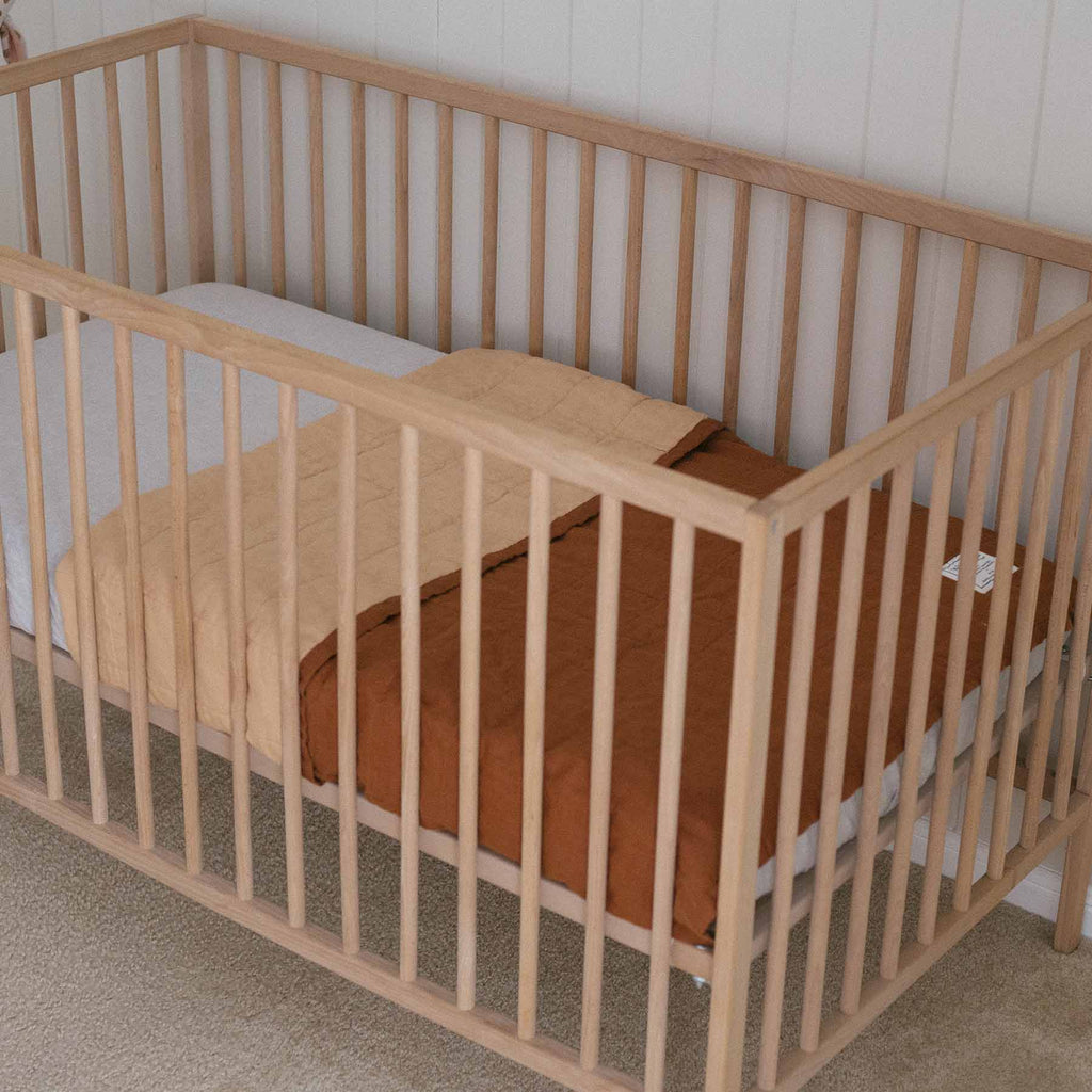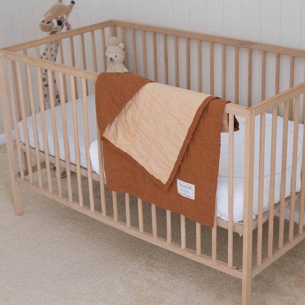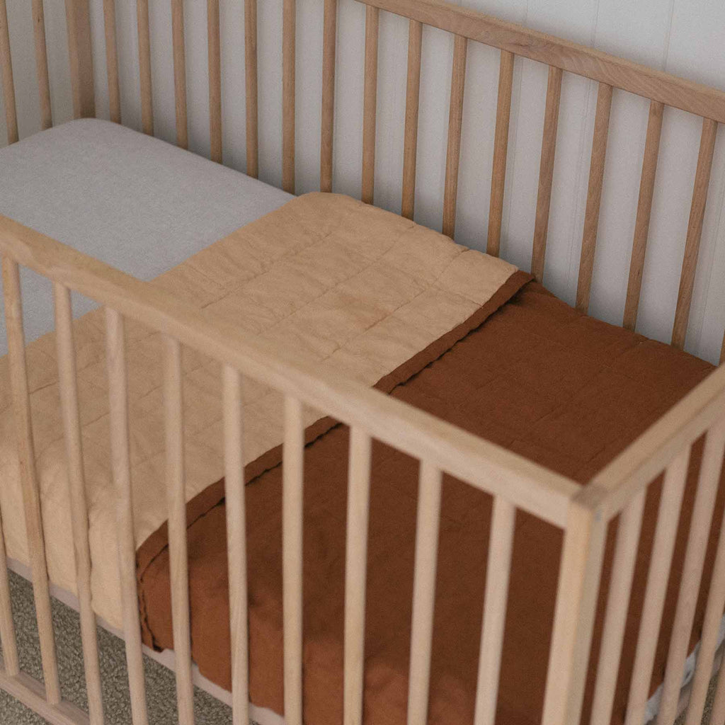 Our linen cot blankets are made from the softest stonewashed French Flax linen with a soft, natural, cotton filling for a breathable, temperature regulating sleep for your little one.