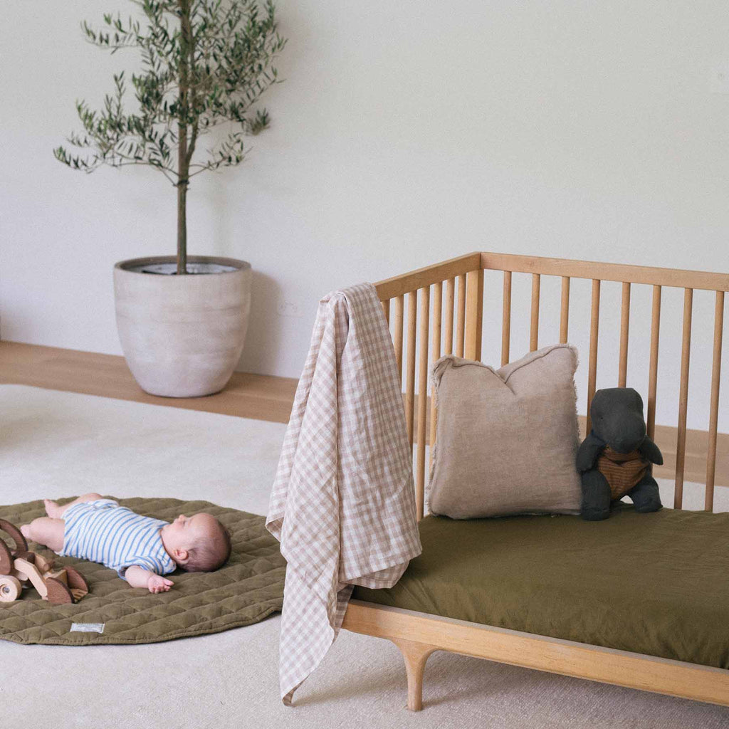 - Quilted Play Mat in Olive – A soft, durable, and machine-washable mat for tummy time and play.