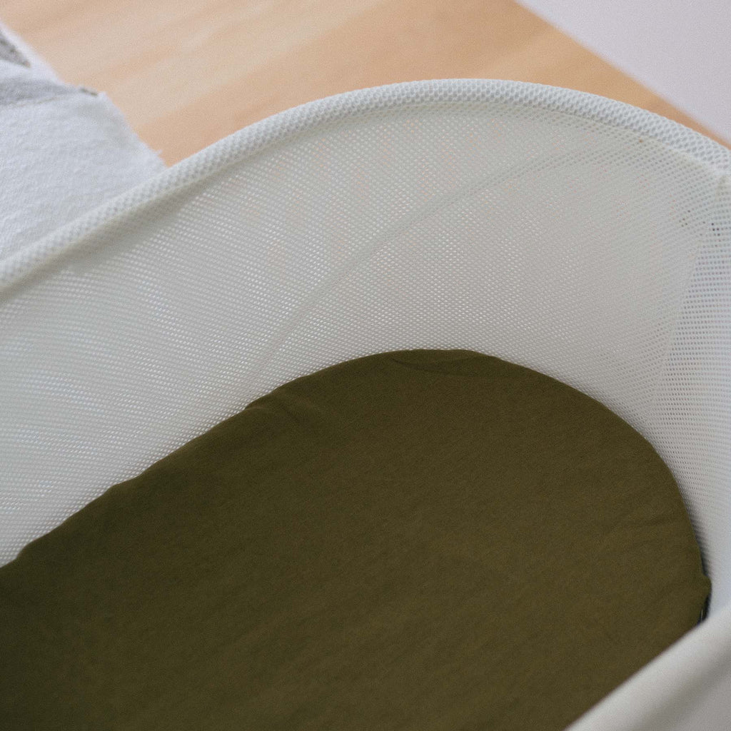 - Cot Sheet & Bassinet Sheet in Olive – Designed for ultimate comfort and durability.