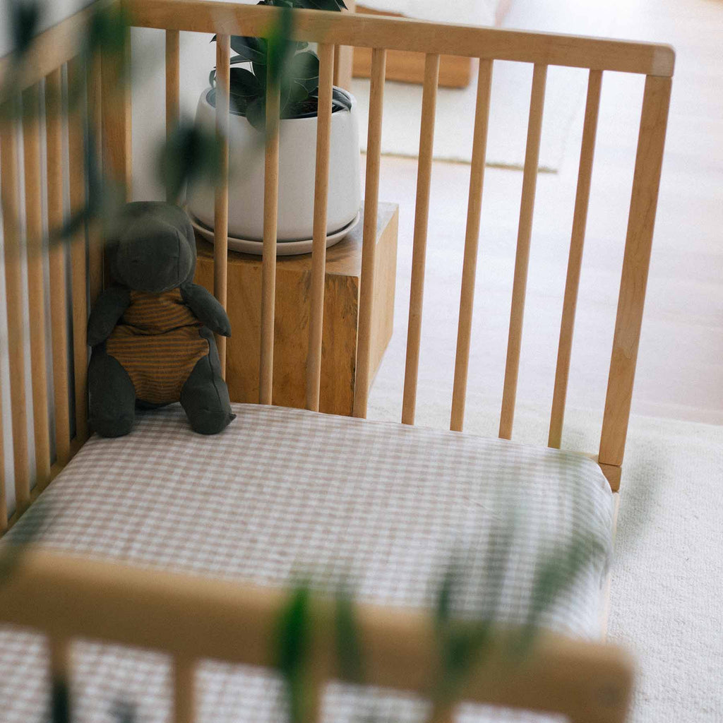 - Cot Sheet & Bassinet Sheet in Gingham – Designed for ultimate comfort and durability.