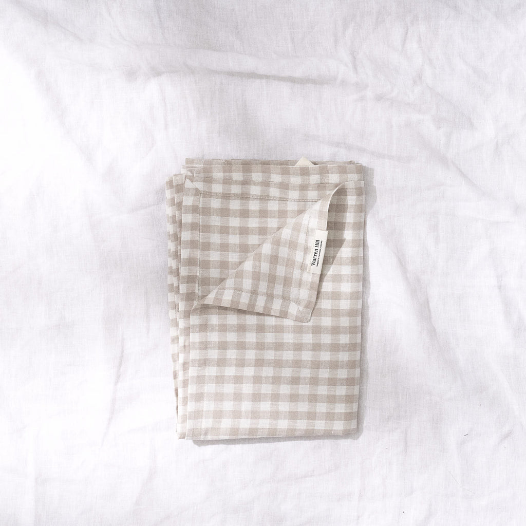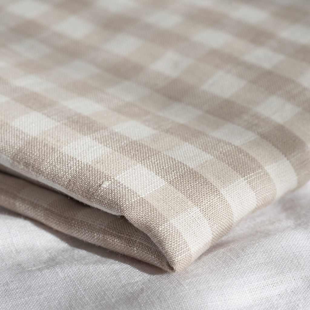 Stonewashed Linen Baby Swaddle - Beige Gingham