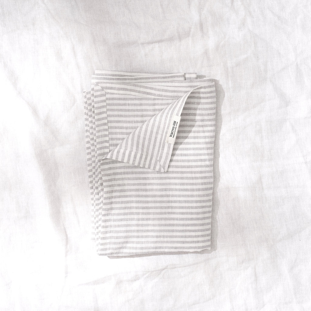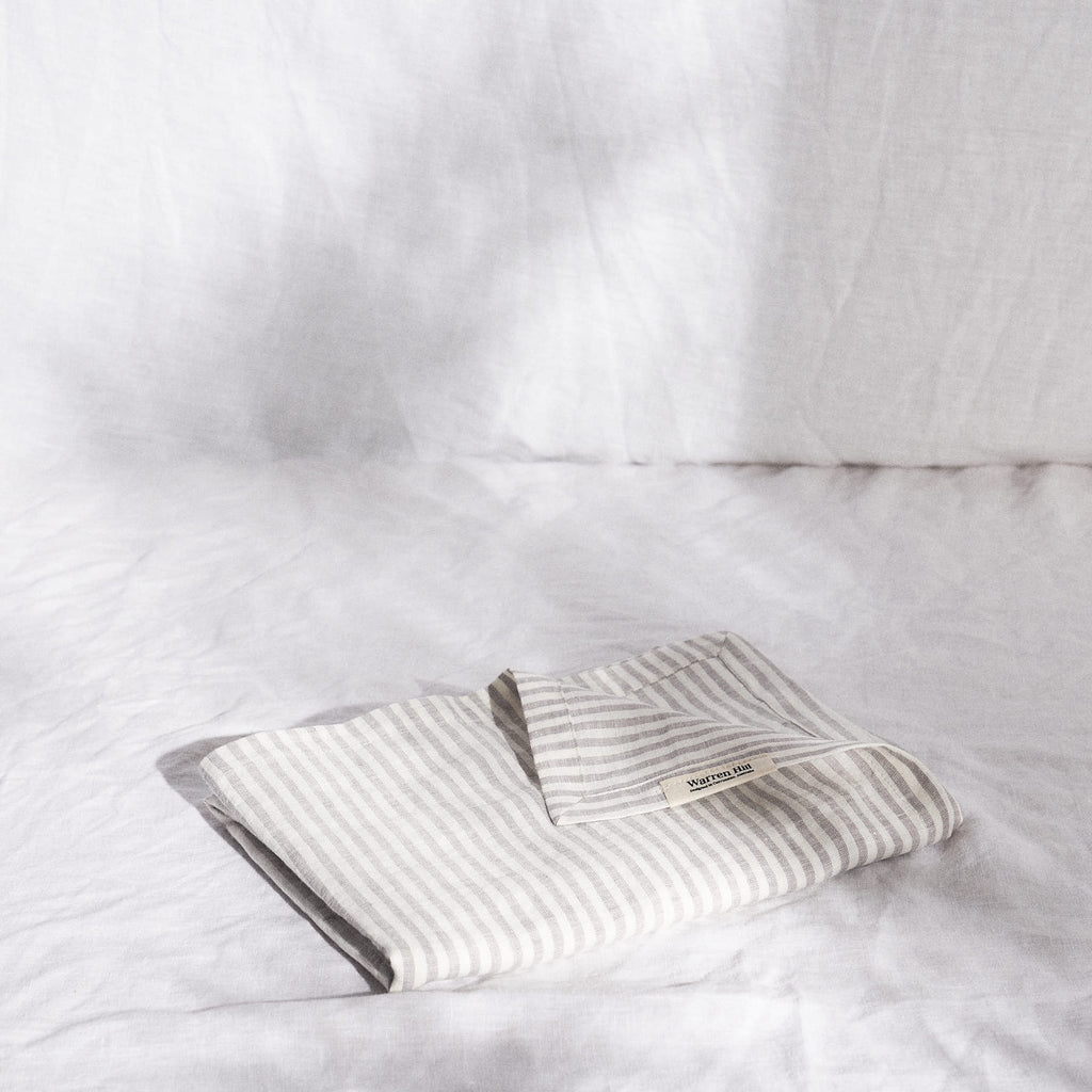 Wrap your little one in the highest quality OKEO-tex certified 100% French linen. Our Grey Stripe baby swaddles are large thin blankets made from breathable stonewashed linen to help regulate temperature during the summer and keep them snug in the winter, being stonewashed linen, our swaddles feel soft and worn from the first time your little one is wrapped in it.