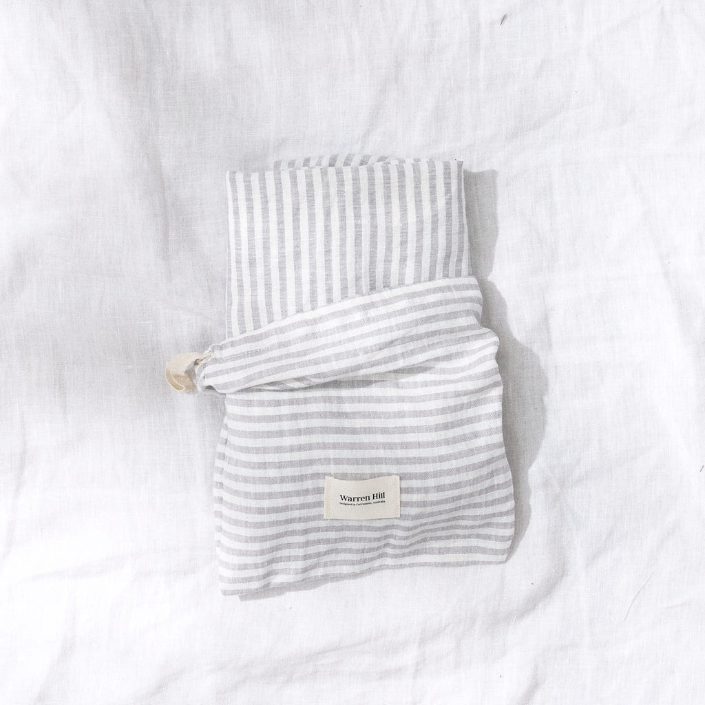 Made from the highest quality OKEO-tex certified French flax linen, our Grey Stripe colour fitted bassinet sheets are stonewashed to give them a soft, worn feel from the first time your little one lays on it.